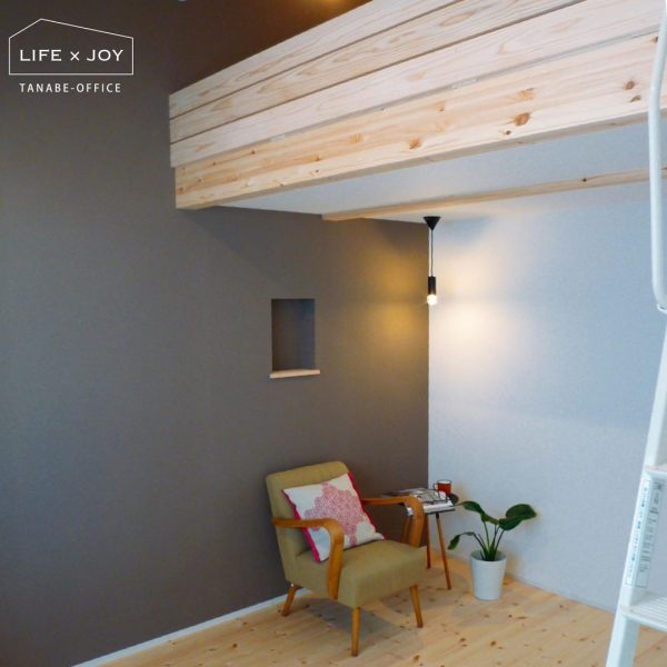 ロフトの下の隅っこにお気に入りのチェアをおいて おやすみ前のリラックスタイム…