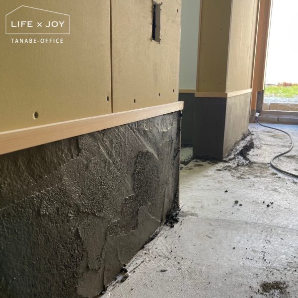 1F店舗の基礎部分が左官仕上げで、丁寧に仕上げられました。