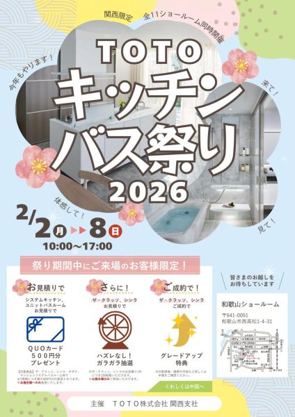 今年も、和歌山ショールームにて「TOTO キッチン・バス祭り」を開催いたします。